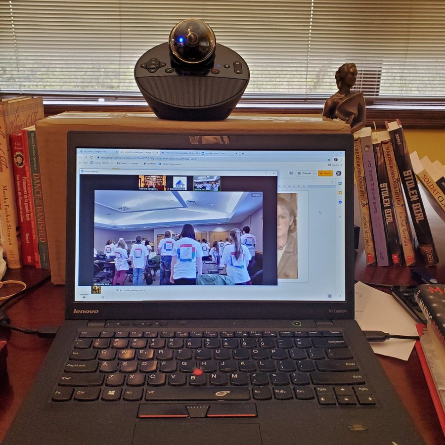 I enjoyed speaking with students from Holdrege Nebraska’s Battle of the Books contest last week! The above photo was posted on twitter by Wilcox-Hildreth Upper Elementary. I took the photo below, which shows the back of their shirts, which is a monopoly board using all of the books! How neat is that?!