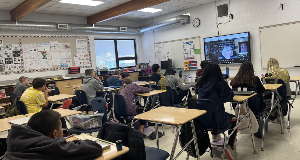 This is my favourite pic from the Nov 3rd visit with Caledonia Park School in Alberta. This is Bonnie N Eldon Wurban and what I love about this pic is what’s on her desk — a printout about #rheaclyman whom I dedicated Winterkill to. Rhea was a Canadian journalist and absolutely fearless. She did not take bribes from Stalin during the Holodomor like so many journalists did. Instead, she wrote the truth about the genocide she was witnessing. Rhea Clyman has a cameo role in Winterkill. Alice, one of the two main characters in Winterkill, is based on the real Alice that Rhea met in her Kharkiv hotel.