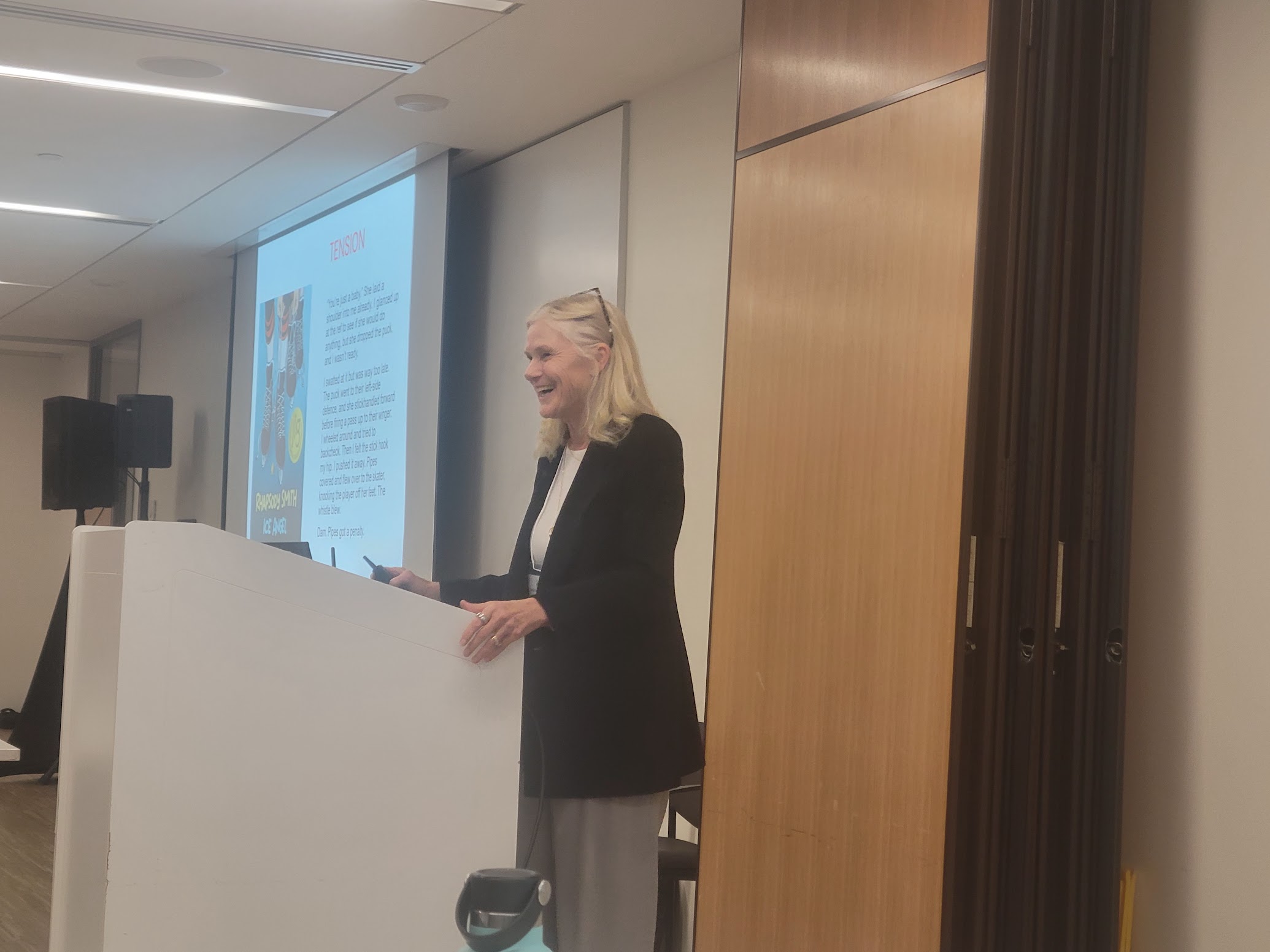 Previous Image Next Image lorna Lorna Schultz Nicholson giving a stellar presentation on writing action scenes.