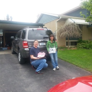 She and her husband are also holding footstep shaped letters from the students of Our Lady of Lourdes.