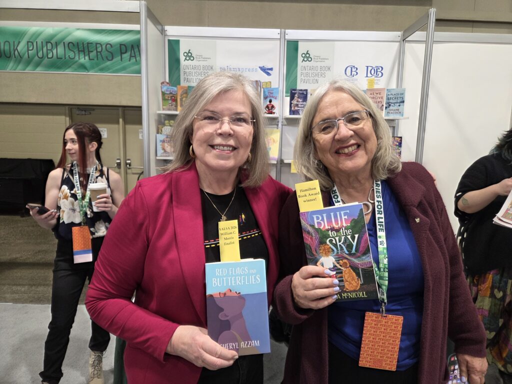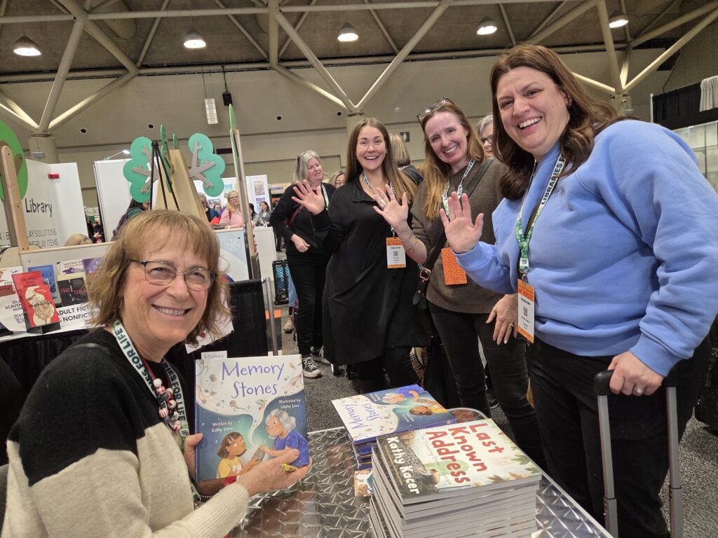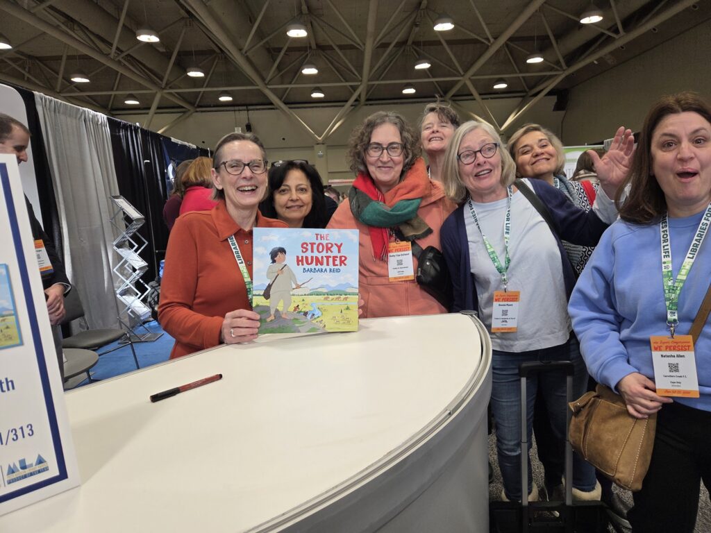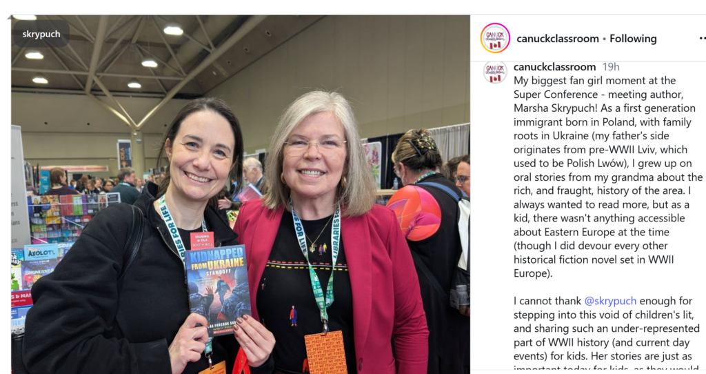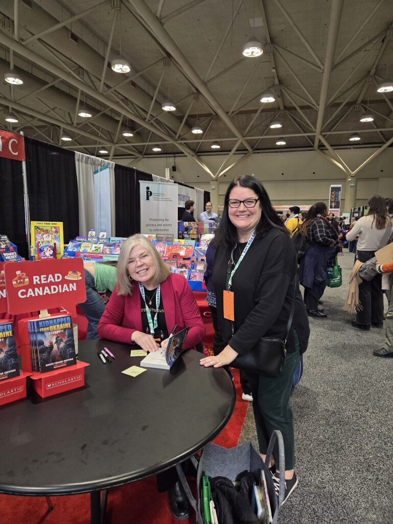 Thanks, Lorna Schultz Nicholson for taking this pic!It was lovely to meet this teacher-librarian whose heritage is Polish-Ukrainian!Sylvia McNicoll’s book won the Hamilton Literary Award this year!!! I’m holding my late friend, Sheryl Azzam’s book, which was a finalist for the William C. Morris Award.With the one and only Barbara Reid!This is Mary Macchuisi, president of Pembroke Publishing. We have now known each other for 3 decades. She gave me a kind and helpful rejection when I was prepublished back in the 1990s, and I showed her letter during presentations. We seem to encounter each other once a year!With Sylvia, Jean E Pendziwol and Ali McDonald! Jean E gave the opening keynote at CANSCAIP’s PYI, which was a bookend to my closing keynote! I first met Ali when she presented at our Brantford Book Camp about 19 years ago! We’ve corresponded ever since!