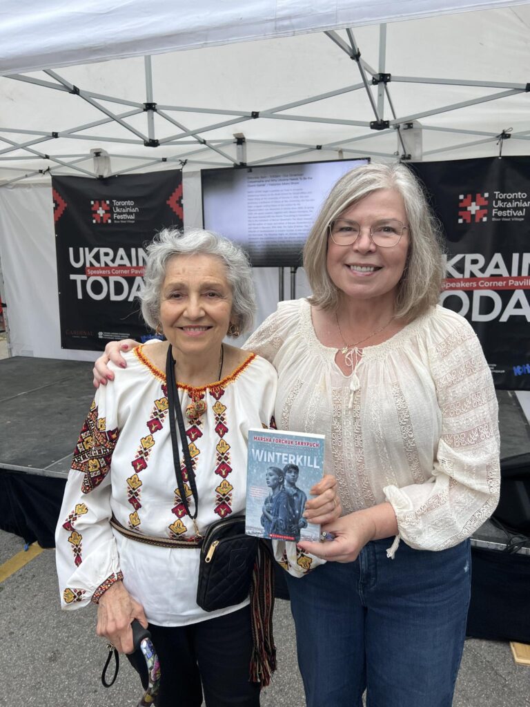 Loved having kids from Act & Shine Kids’ Acting Studio read the opening pages of Under Attack, book #1 of my Kidnapped from Ukraine trilogy today at the BWV Toronto Ukrainian Festival. I read and spoke, but unlike these talented kids, I neither sang nor danced!t was nice to see Valentina Kuryliw today at the BWV Toronto Ukrainian Festival. I had the honour of working with Valentina’s Holodomor Research and Education Consortium – HREC in 2022/2023 when my Holodomor novel, Winterkill was brand new. In addition to my directly booked presentations. HREC funded 30 extra virtual visits with underfunded schools, meaning I was able to educate thousands more students who otherwise might not have known about this genocide, which in many ways is a precursor to what Putin is doing now in Ukraine.