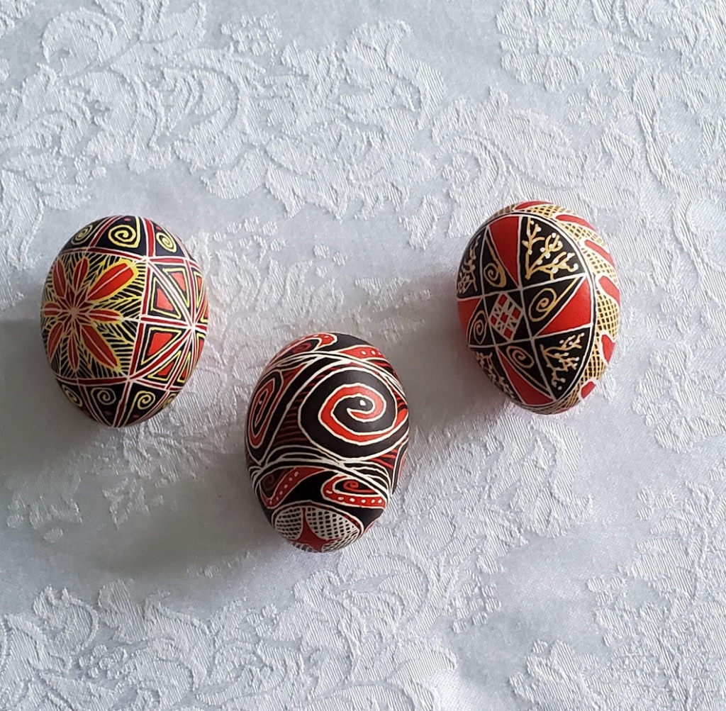 I usually make more than one pysanka at a time. Here are some I did together.