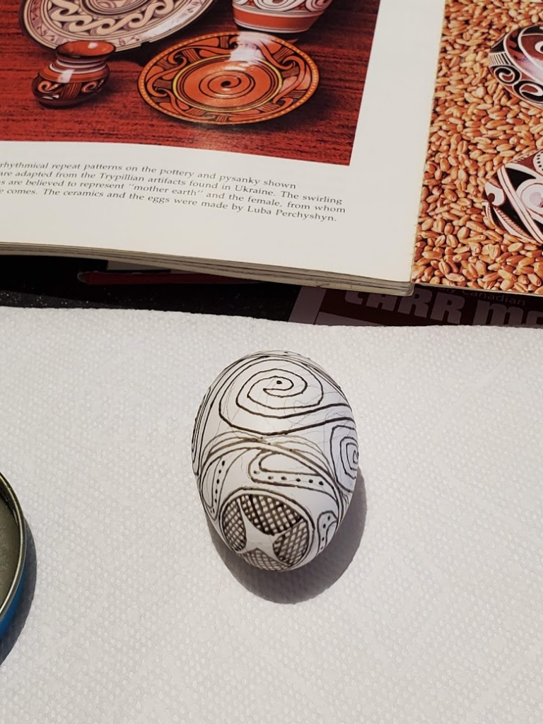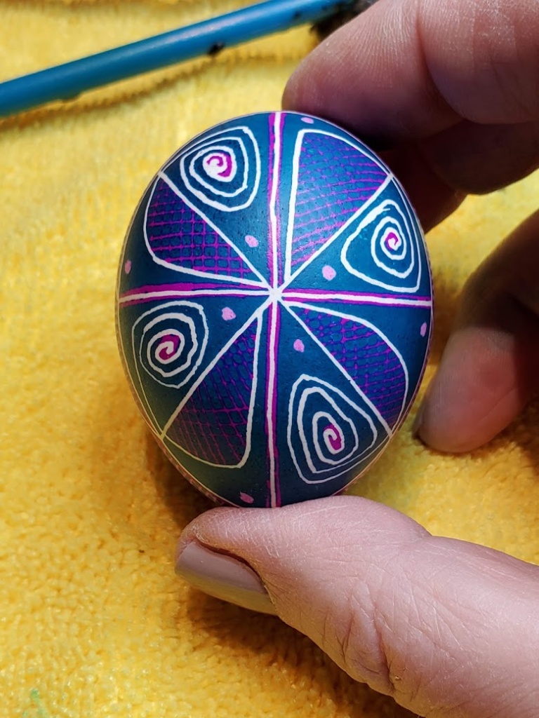 It’s like I’ve been galloping breathlessly from manuscript deadline to edit to promotion to more deadlines and repeat. And of course in the midst of that are the usual family and personal things that we all go through. Something that calms me and helps with creativity is creating pysanky — Ukrainian Easter Eggs. But for the last dozen years I’ve been writing more than one book a year. Much as I longed for the creative solitude of making pysanky, the time simply has not been there. And then there were the sore hands. Writing takes creativity of course, but it also requires great physical effort to sit in front of a screen for hours on end, then go do research, take notes, go back to the keyboard. But I have a few weeks right now while I’m between school visits and tours. I’ve finished two novels and am waiting for edits. And my hands are not all that sore! So it’s pysanka time! I dug out my old equipment and bought new dyes. My goal is to make maybe 10. It all depends on when the next edits arrive.